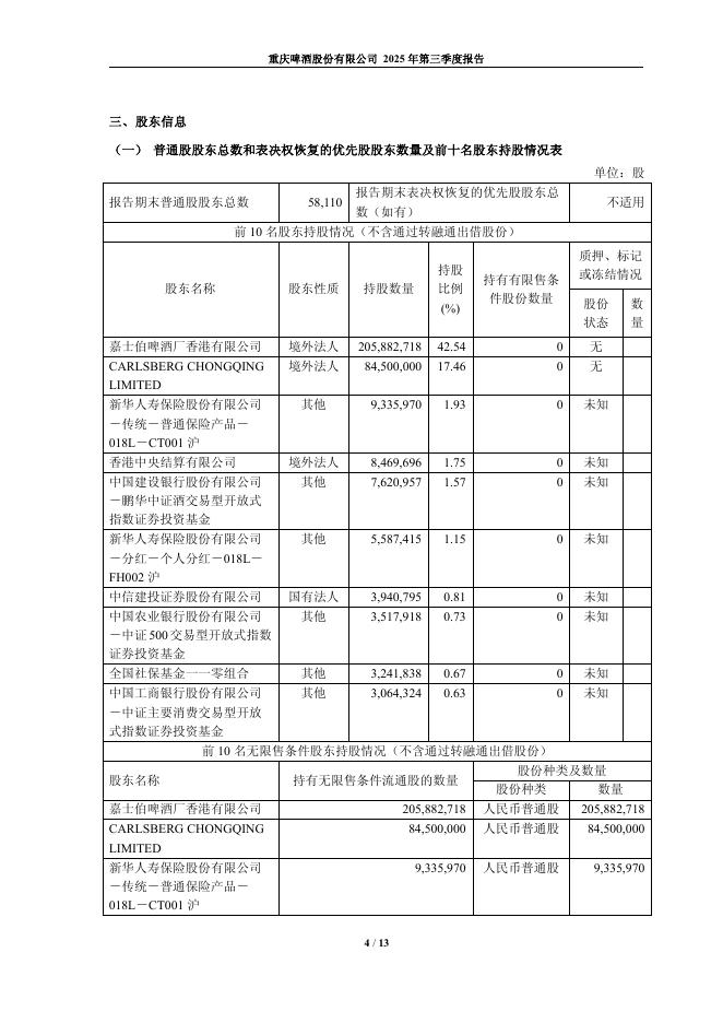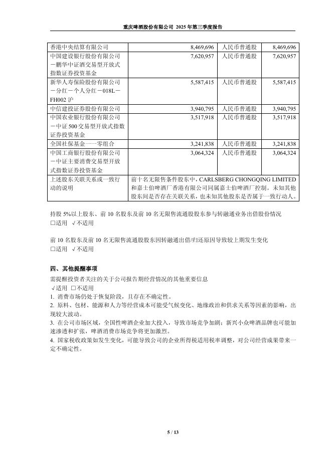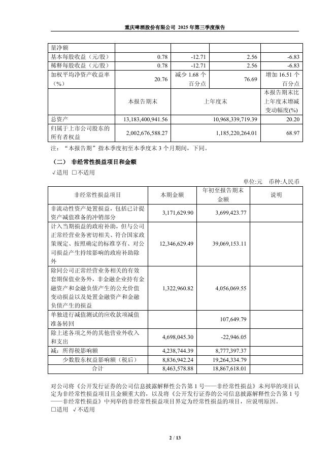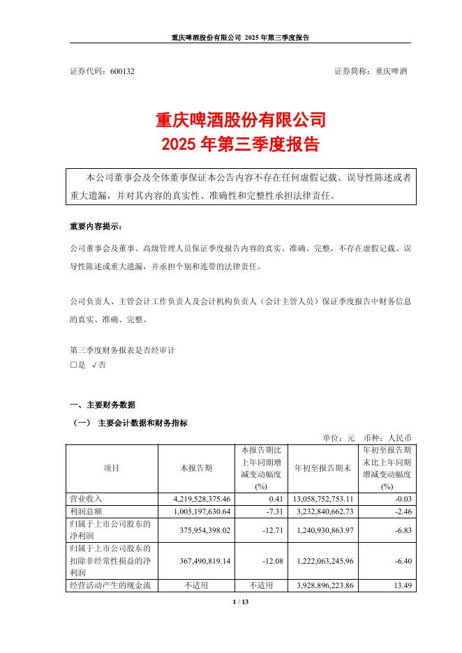 600132-重庆啤酒:重庆啤酒股份有限公司2025年第三季度报告.pdf