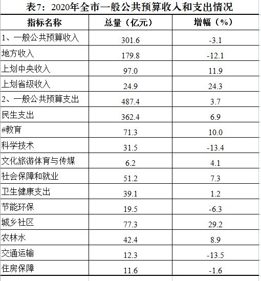 全市一般公共预算支出487.36亿元,增长3.7%。其中,财政用于民生支出362.4亿元,增长6.9%。
