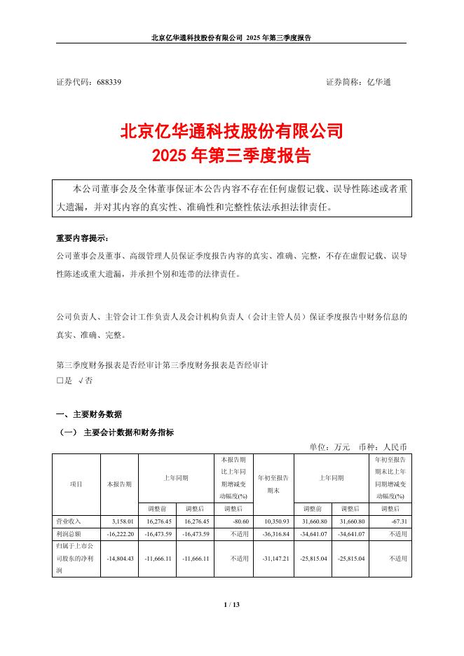 688339-亿华通:亿华通2025年第三季度报告.pdf