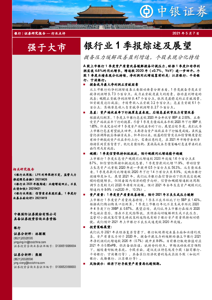 中银证券:银行业1季报综述及展望:拨备压力缓解改善盈利增速,个股表现分化持续.pdf