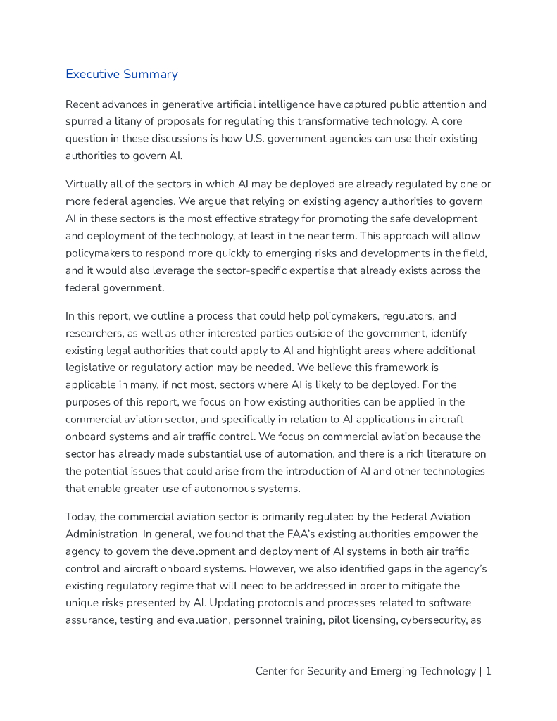 CSET:2024年与现有当局一起治理人工智能-商业航空案例研究报告(英文版).pdf