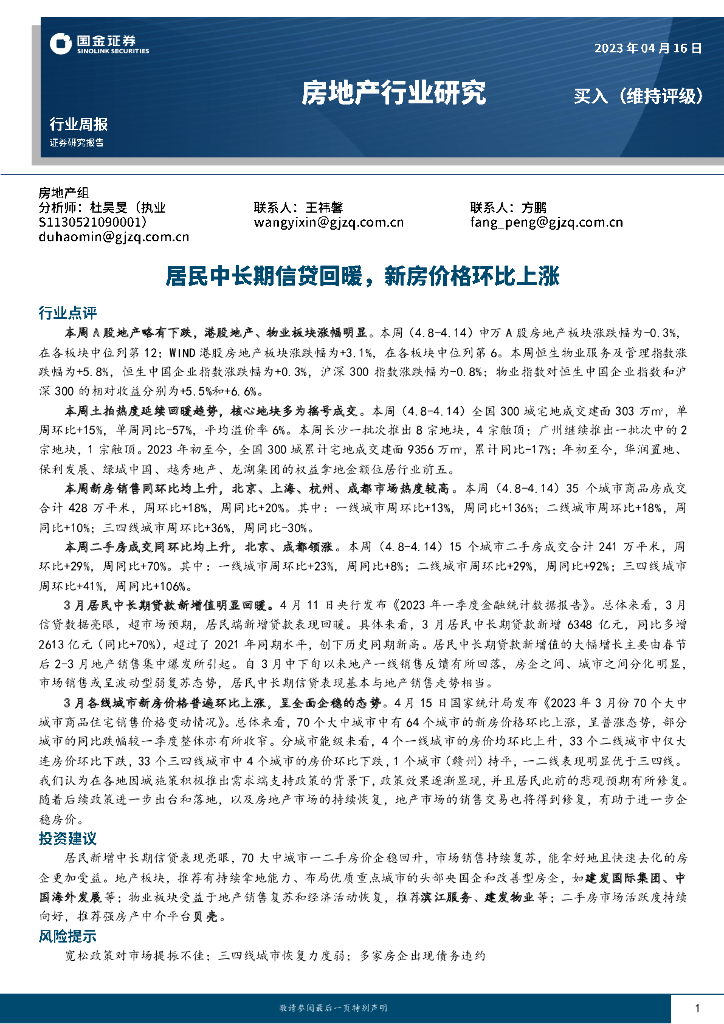 国金证券:房地产行业周报:居民中长期信贷回暖,新房价格环比上涨.pdf