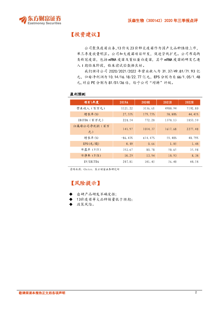 东方财富证券:沃森生物(300142)-2020年三季报点评:营收、净利高速增长,高景气度延续.pdf