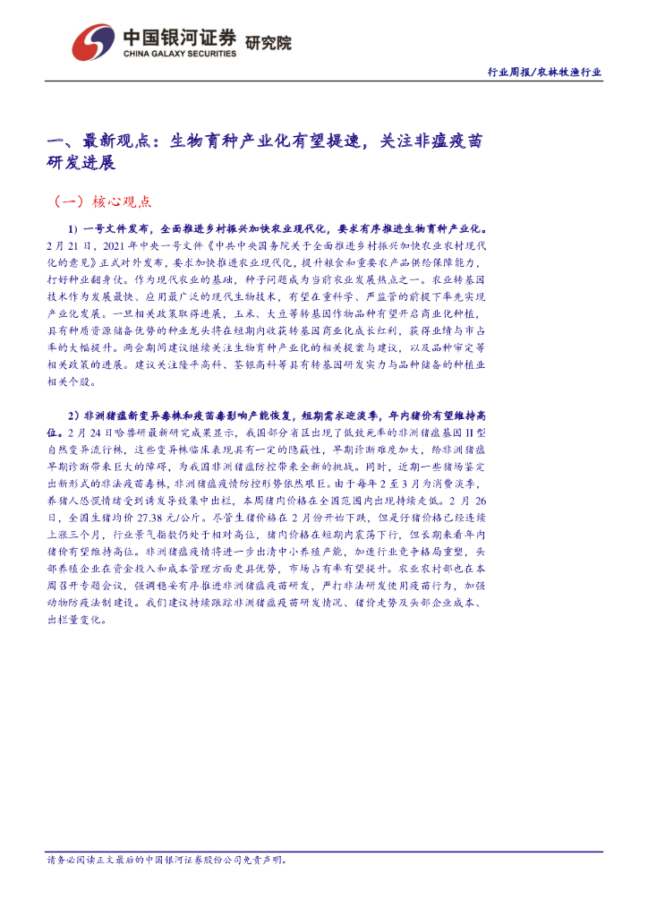 中国银河:农林牧渔行业周报:生物育种产业化有望提速,关注非瘟疫苗研发进展.pdf