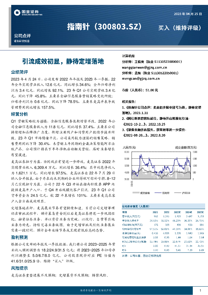 国金证券:指南针(300803)-引流成效初显,静待定增落地.pdf