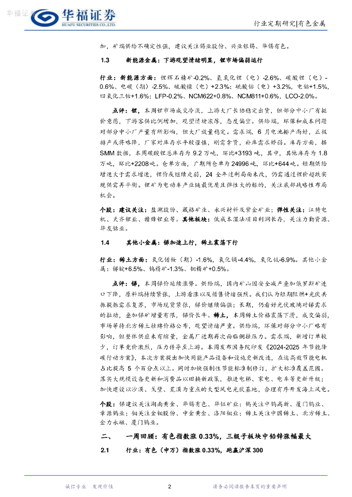 华福证券:有色金属行业周报:“降碳”方案优化产业格局,继续推荐金铜铝锑.pdf