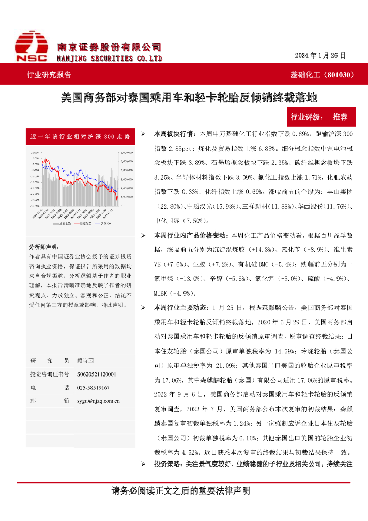 南京证券:基础化工行业:美国商务部对泰国乘用车和轻卡轮胎反倾销终裁落地.pdf