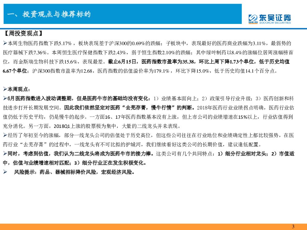 东吴证券:东吴医药行业周观点:医药指数市盈率低于历史均值6.67,估值溢价率低于历史均值14.1%,医药调整接近尾声.pdf