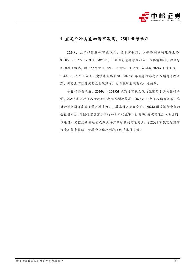中邮证券:银行2024年年报与2025年一季报综述:重定价冲击叠加债市震荡,25Q1业绩承压.pdf