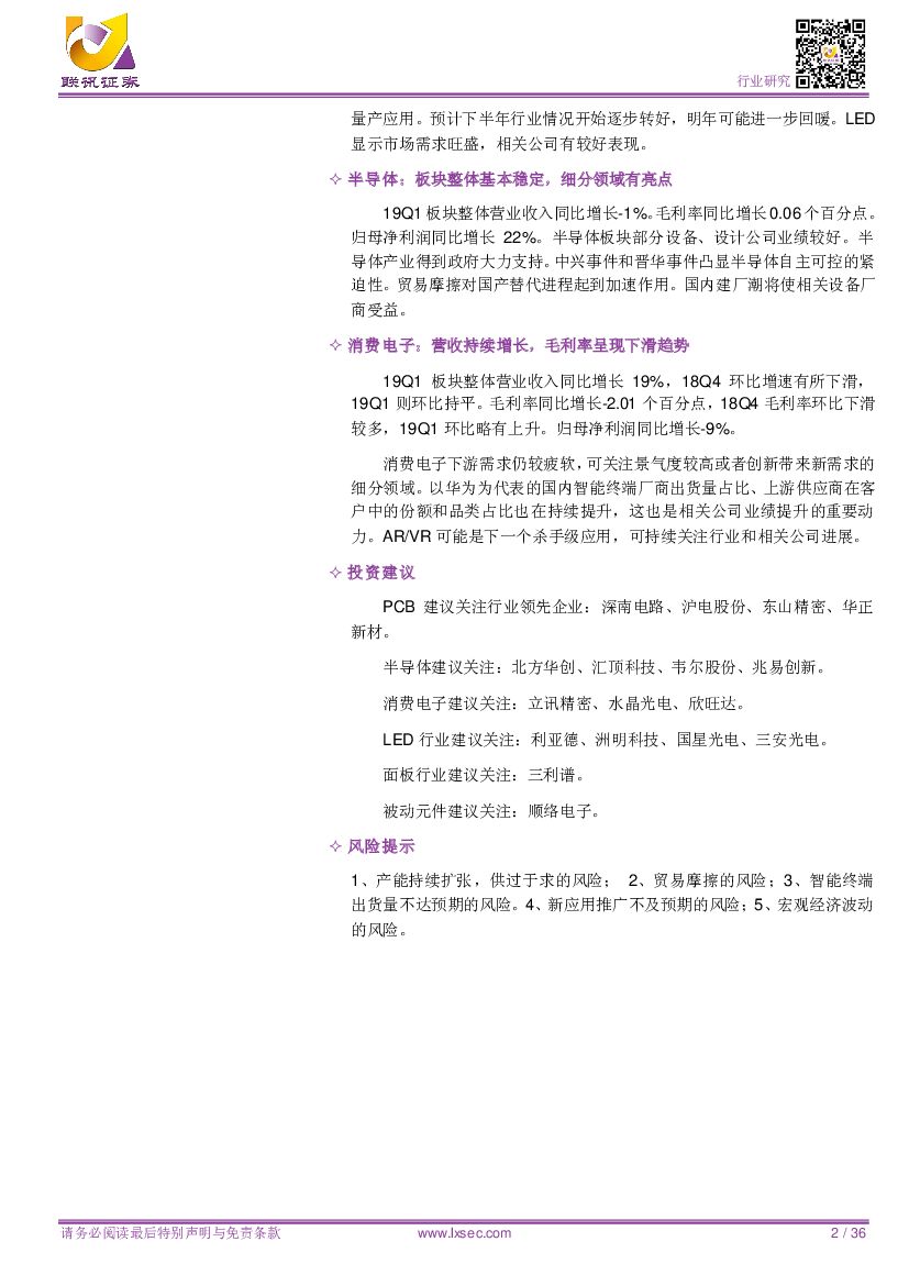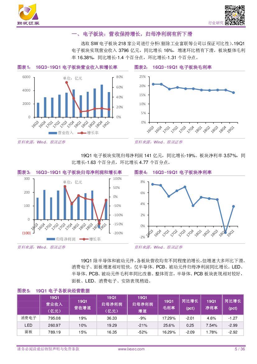 联讯证券:【联讯电子一季报总结】:营收增速放缓,利润略有下滑,关注细分领域投资机会.pdf