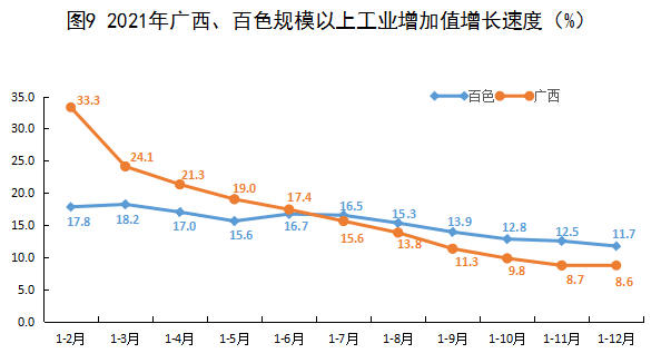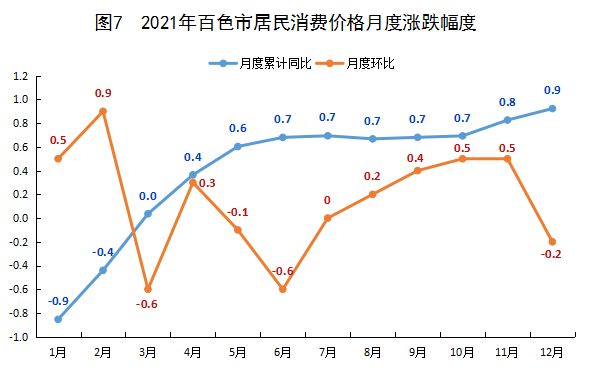 表1 2021年百色市居民消费价格比上年涨跌幅度 |