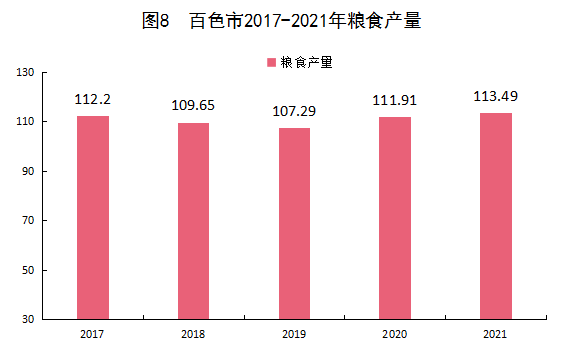 全年全市粮食总产量113.49万吨,比上年增加1.57万吨,增长1.4%。其中,春收粮食产量1.27万吨,下降2.1%;早稻产量14.56万吨,增长0.8%;秋粮产量71.7万吨,增长1.3%。全年谷物产量107.45万吨,增长1.4%。其中,稻谷产量49.09万吨,增长1.7%;玉米产量57.45万吨,增长1.2%。