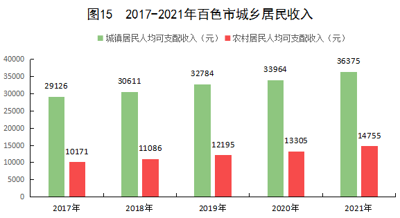 全年全市居民人均可支配收入22817元,比上年名义增长8.8%。按常住地分,城镇居民人均可支配收入36375元,比上年名义增长7.1 %。城镇居民人均可支配收入中位数31229元,增长7.0%。农村居民人均可支配收入14755元,比上年名义增长10.9%。农村居民人均可支配收入中位数11301元,增长15.2%。城乡居民人均可支配收入比值为2.47,比上年缩小0.09。