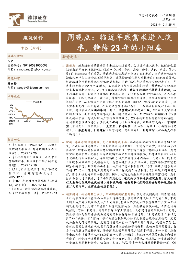 德邦证券:建筑材料周观点:临近年底需求进入淡季,静待23年的小阳春.pdf