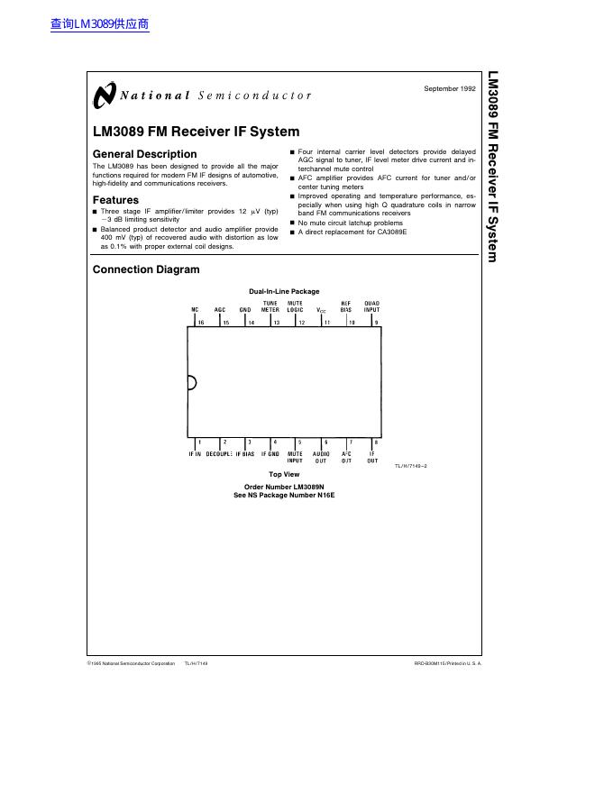 National Semiconductor LM3089 FM Receiver IF System 数据手册.pdf