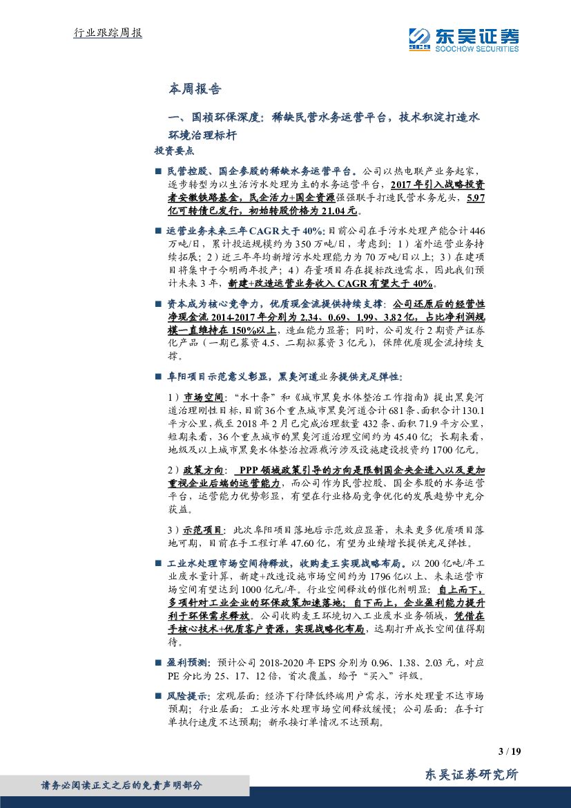 东吴证券:环保行业周报:关注融资边际变化,供给侧改革下选择有效治理公司!.pdf