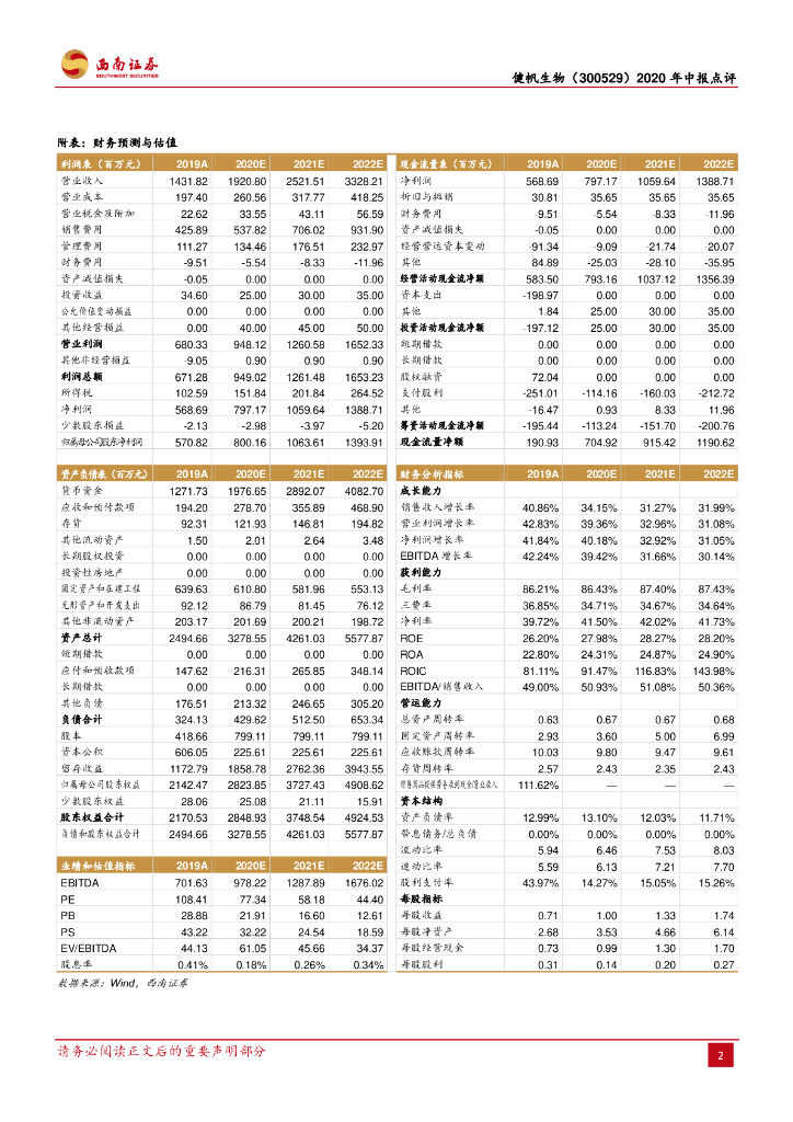 西南证券:健帆生物(300529)-上半年业绩高增长,疫情期间公司产品临床认可度提升.pdf