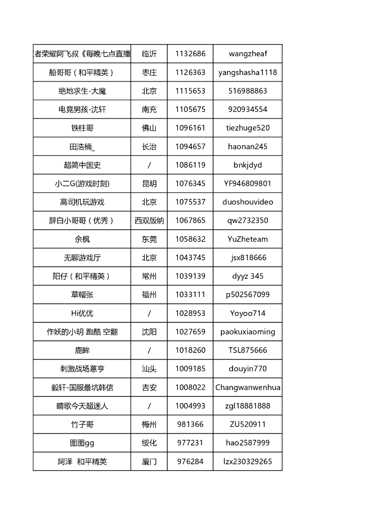 游戏类抖音网红联系方式.pdf