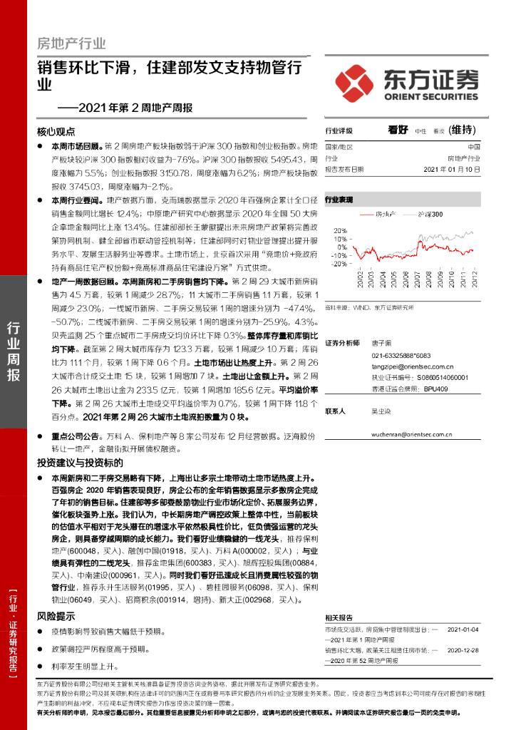 东方证券:2021年第2周地产周报:销售环比下滑,住建部发文支持物管行业.pdf