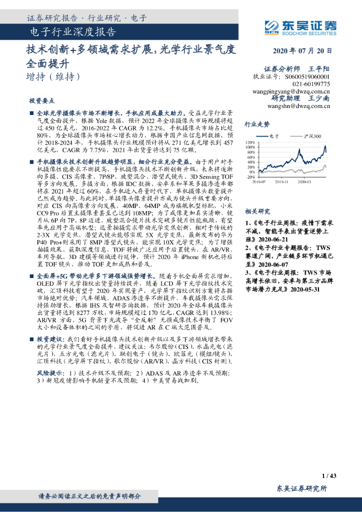 东吴证券:电子行业深度报告:技术创新+多领域需求扩展,光学行业景气度全面提升.pdf