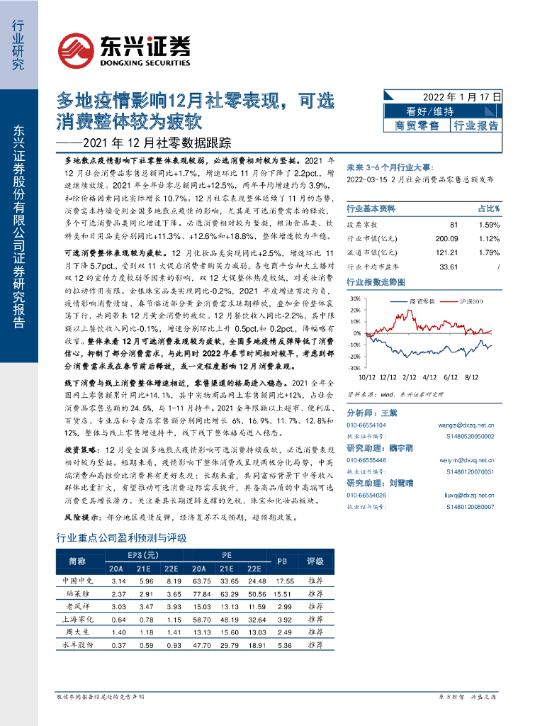 东兴证券:商贸零售:2021年12月社零数据跟踪:多地疫情影响12月社零表现,可选消费整体较为疲软.pdf