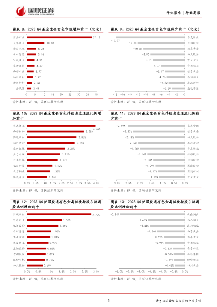 国联证券:有色金属1月周专题:有色金属2023 Q4基金持仓分析,配置比例继续提升,铜、锂获增配显著.pdf