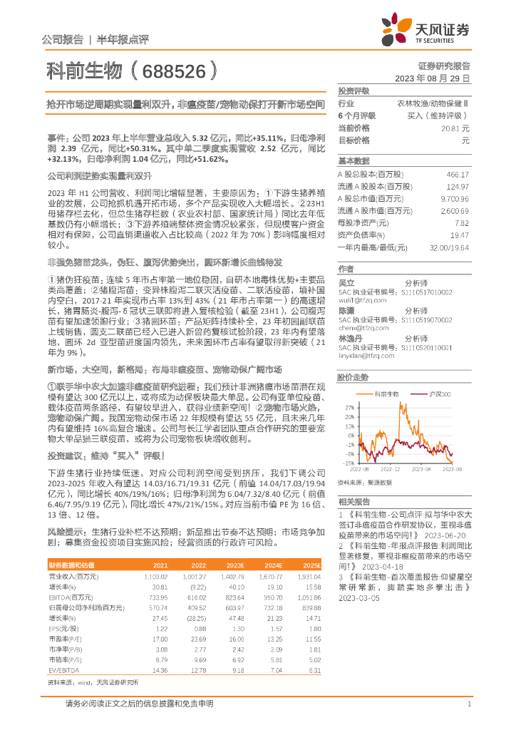 天风证券:科前生物(688526)-抢开市场逆周期实现量利双升,非瘟疫苗/宠物动保打开新市场空间.pdf