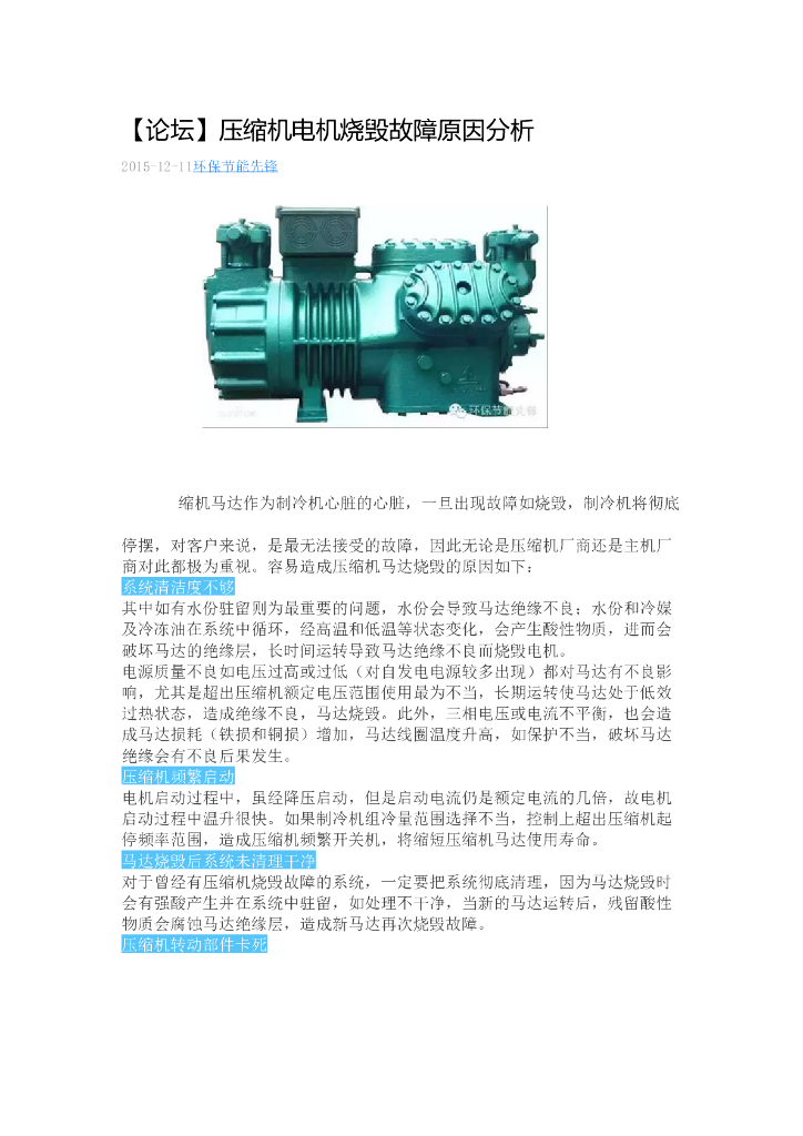 [论坛]压缩机电机烧毁故障原因分析.doc