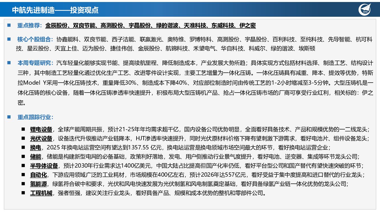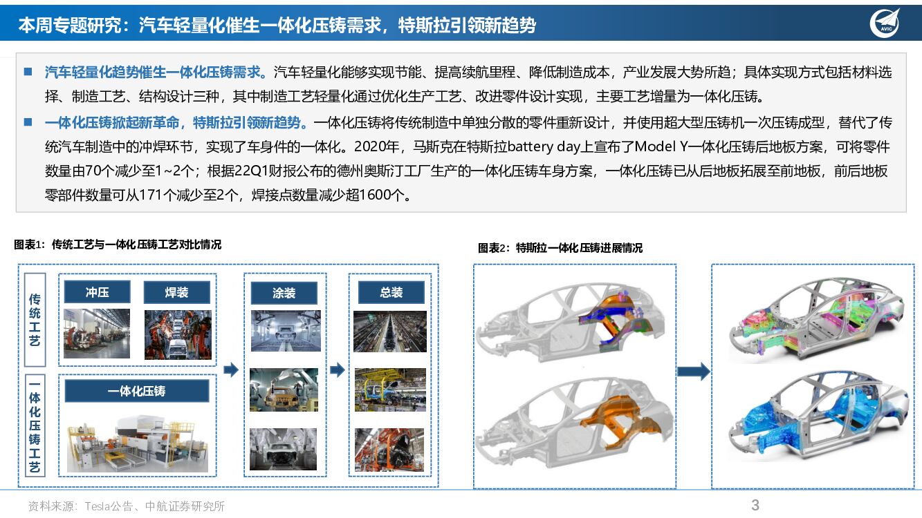 中航证券:先进制造行业周报:汽车轻量化趋势催生一体化压铸需求,相关设备厂商有望充分受益.pdf