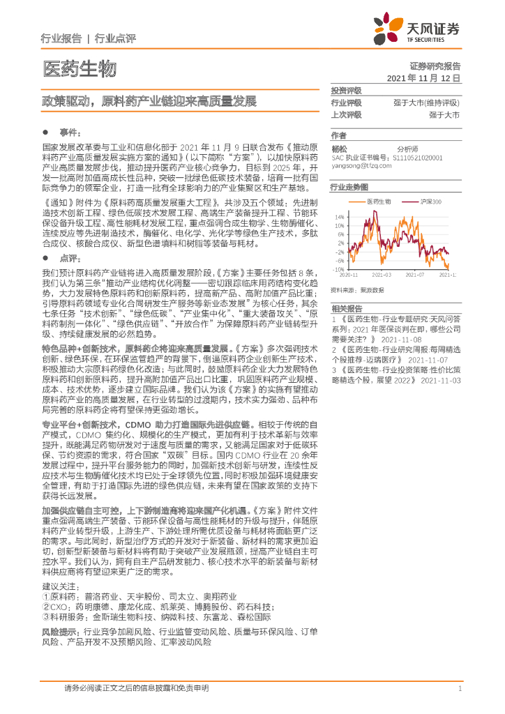 天风证券:医药生物行业点评:政策驱动,原料药产业链迎来高质量发展.pdf