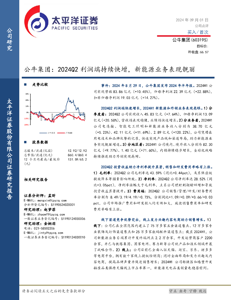 太平洋证券:公牛集团:2024Q2利润端持续快增,新能源业务表现靓丽.pdf