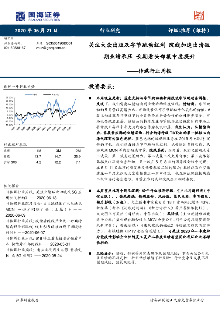 国海证券:传媒行业周报:关注大众出版及字节跳动红利 院线加速出清短期业绩承压 长期看头部集中度提升.pdf