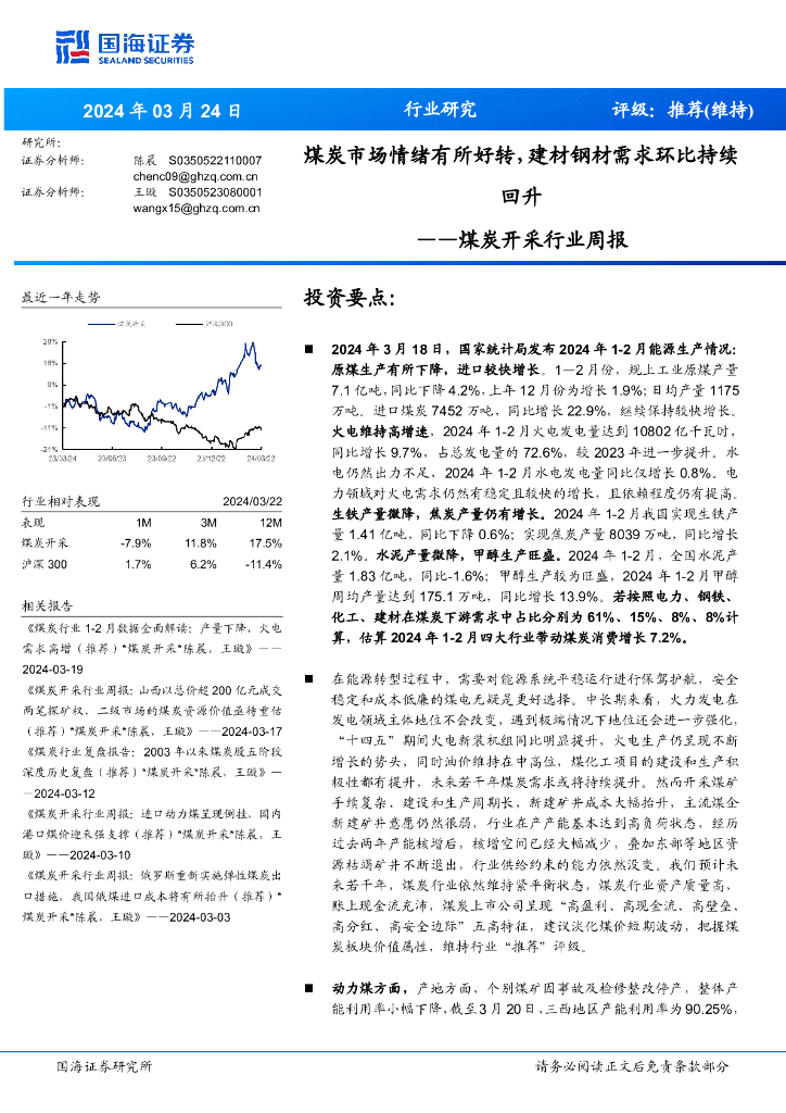 国海证券:煤炭开采行业周报:煤炭市场情绪有所好转,建材钢材需求环比持续回升.pdf