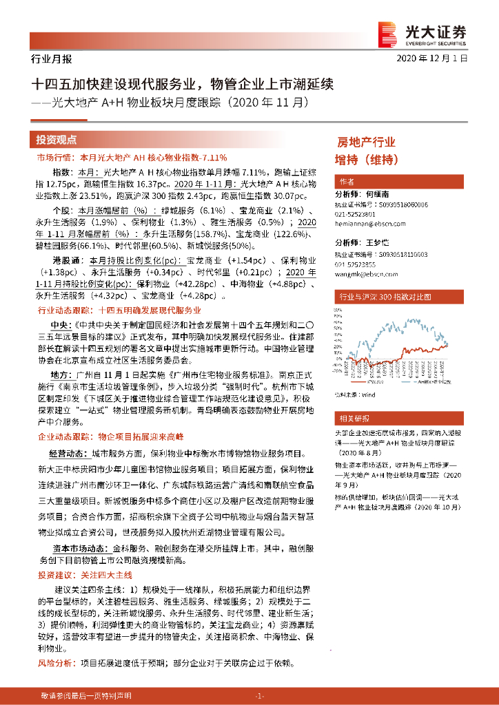 光大证券:房地产行业月报:地产A+H物业板块月度跟踪:十四五加快建设现代服务业,物管企业上市潮延续.pdf