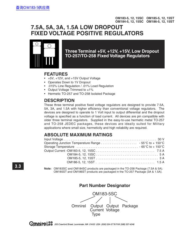 OmnIrel OM183-5,12,5SC OM184-5,12,5SC OM185-5,12,5SC OM186-5,12,5SC 数据手册(1).pdf