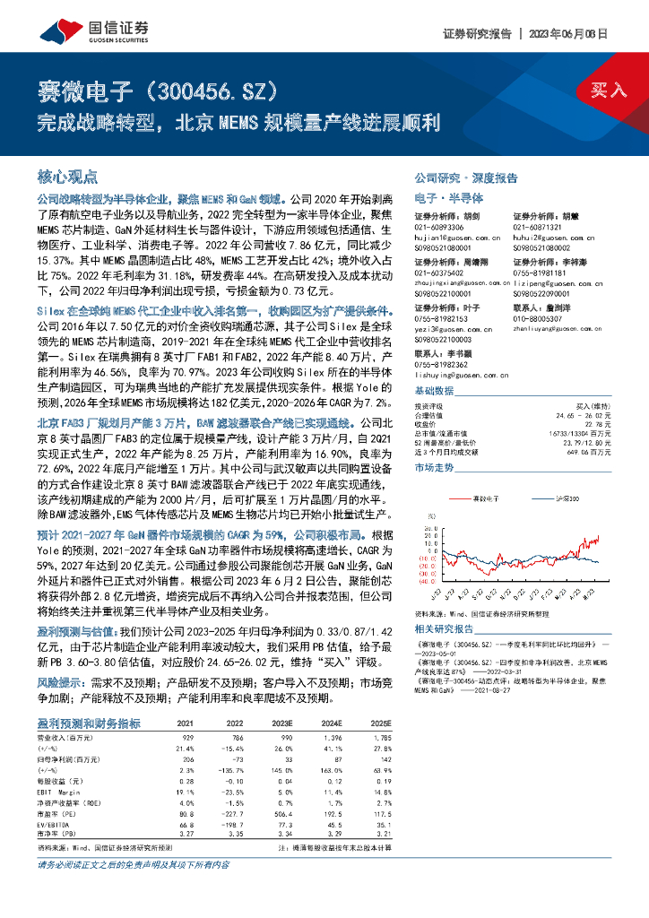 国信证券:赛微电子(300456)-完成战略转型,北京MEMS规模量产线进展顺利.pdf