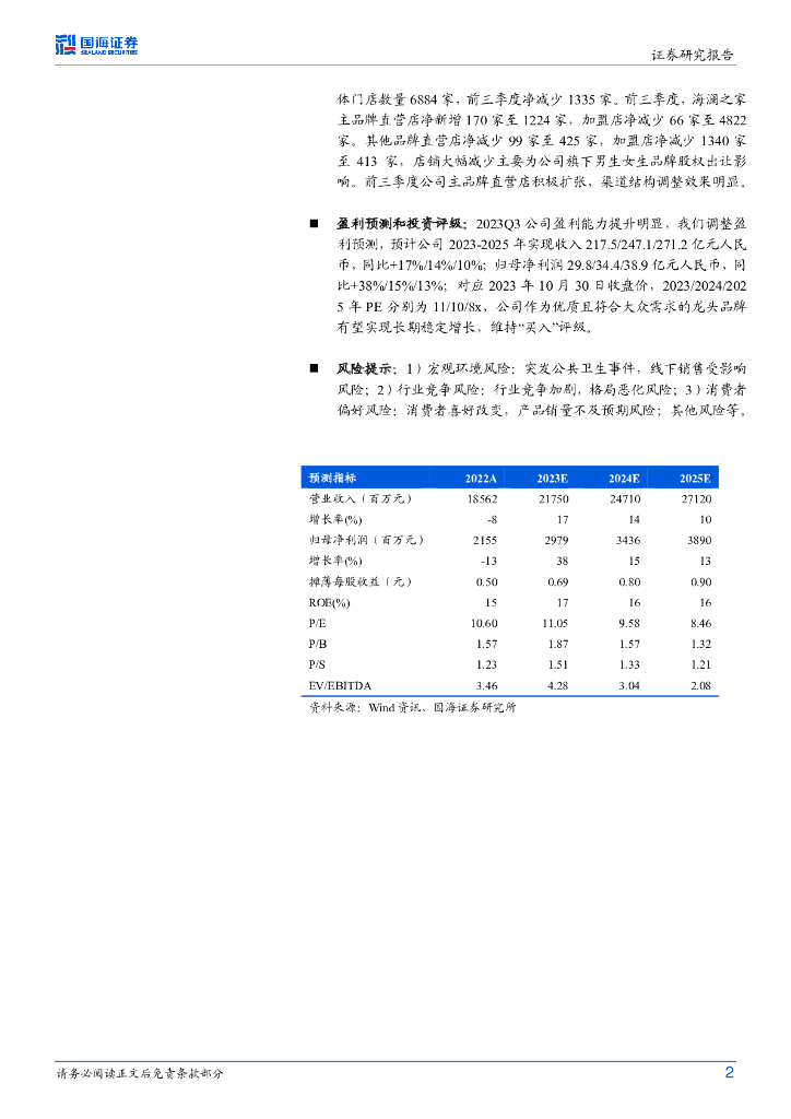 国海证券:海澜之家(600398)-2023Q3业绩点评:Q3业绩超预期,线上毛利率提升.pdf