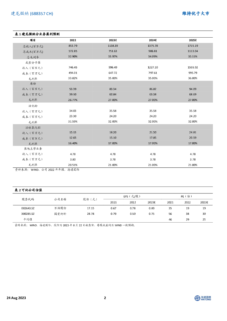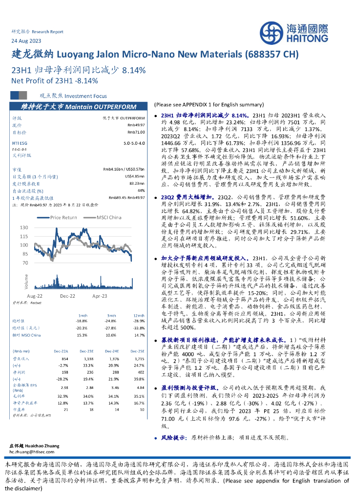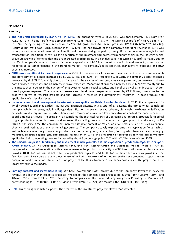 海通国际:建龙微纳(688357)-23H1归母净利润同比减少8.14%.pdf