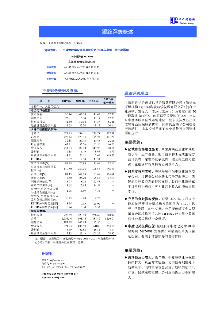 新世纪:中建海峡建设发展有限公司2020年度第一期中期票据跟踪评级报告.pdf