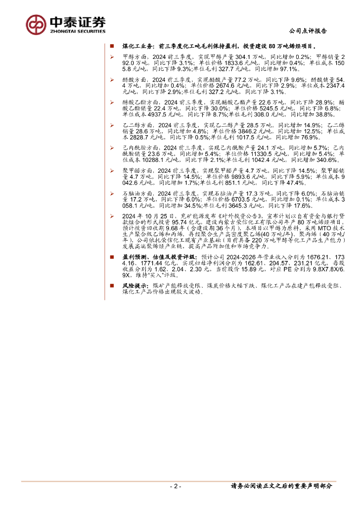 中泰证券:兖矿能源(600188)-煤化工及海外经营向好,业绩环比继续改善.pdf