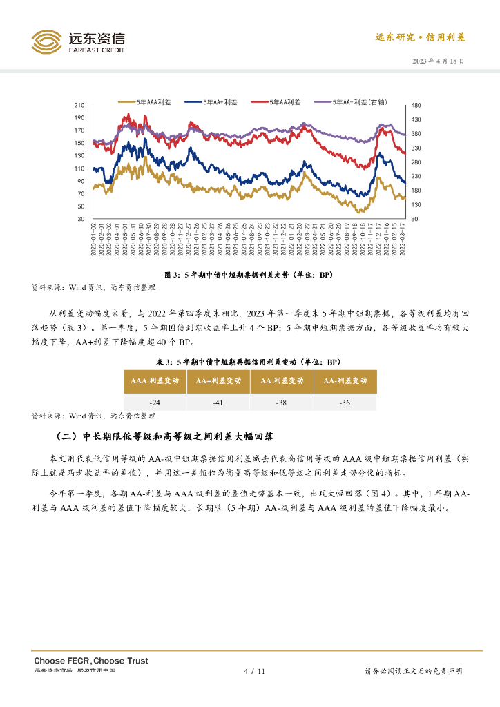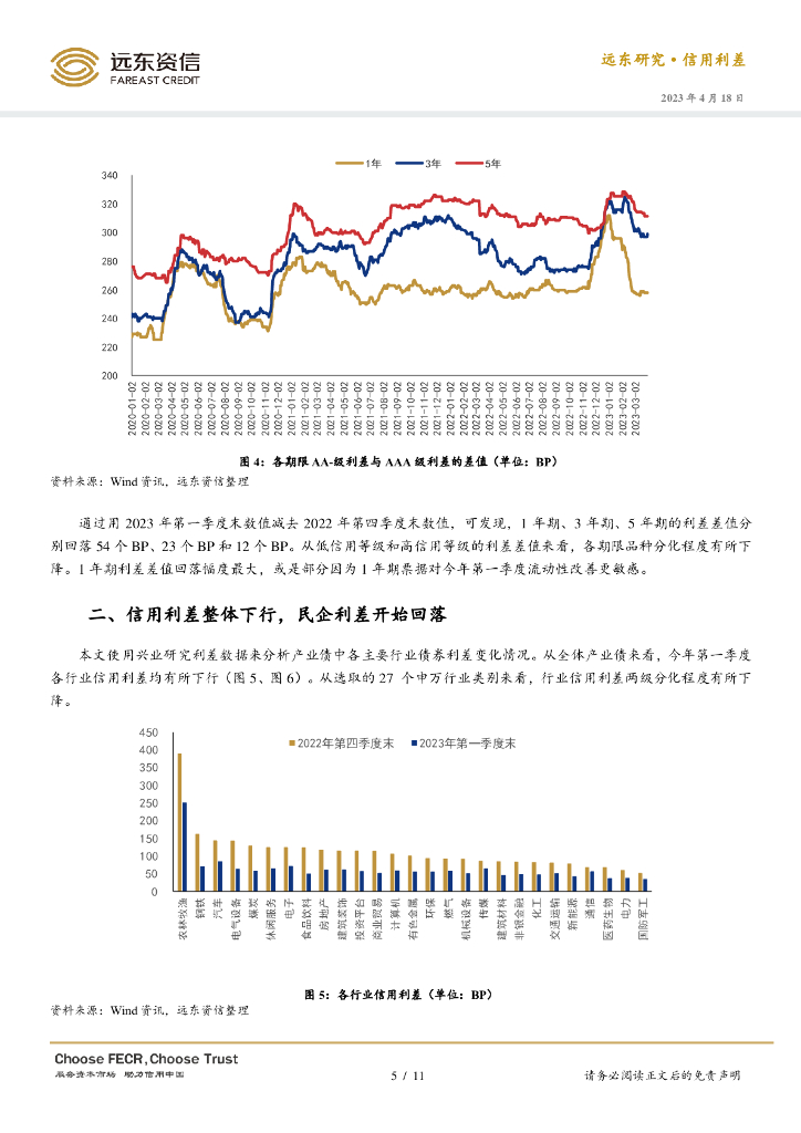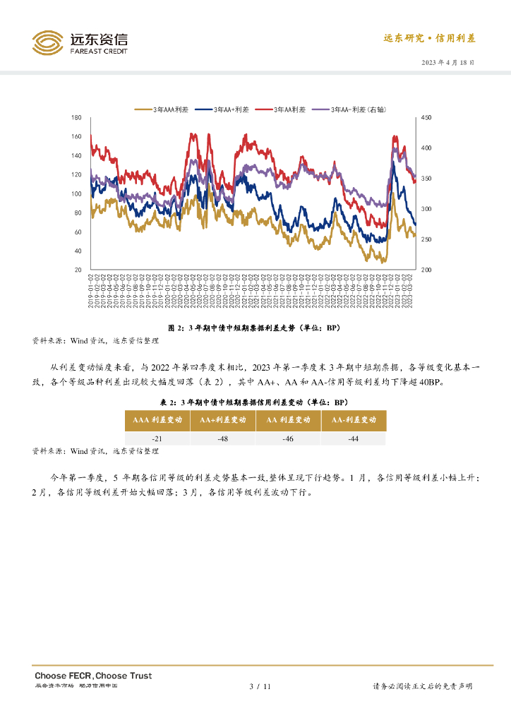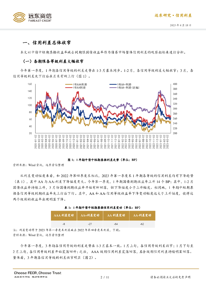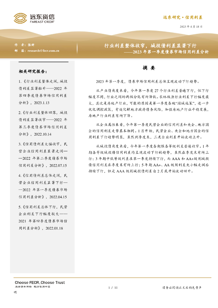 远东资信:2023年第一季度债券市场信用利差分析:行业利差整体收窄,城投债利差显著下行.pdf