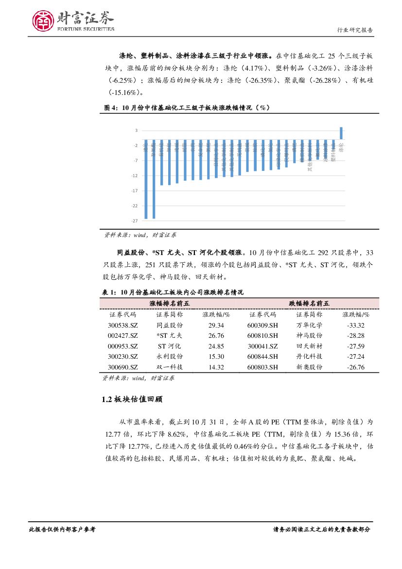 财富证券:基础化工行业月度报告:Q3基础化工业绩高点回落,警惕行业下行风险.pdf