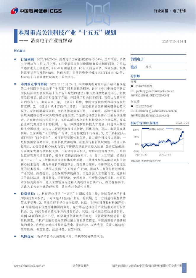 中国银河:消费电子产业链跟踪:本周重点关注科技产业“十五五”规划.pdf