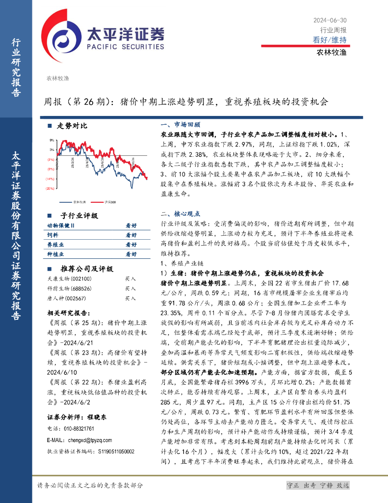 太平洋证券:农林牧渔周报(第26期):猪价中期上涨趋势明显,重视养殖板块的投资机会.pdf