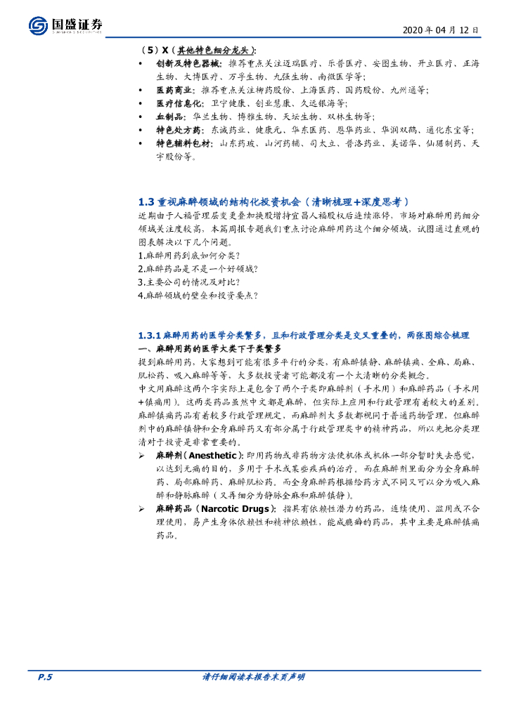 国盛证券:医药生物行业周报:麻醉领域浪潮再起,结构性机遇如何把握?(清晰梳理+深度思考).pdf