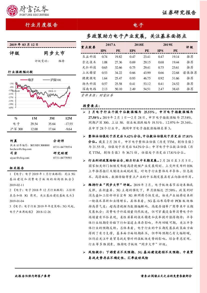 财富证券:电子行业月度报告:多政策助力电子产业发展,关注基本面拐点.pdf