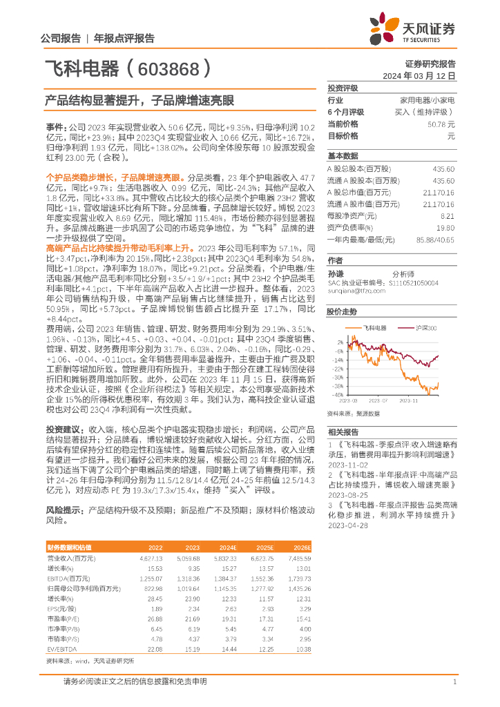 天风证券:飞科电器(603868)-产品结构显著提升,子品牌增速亮眼.pdf
