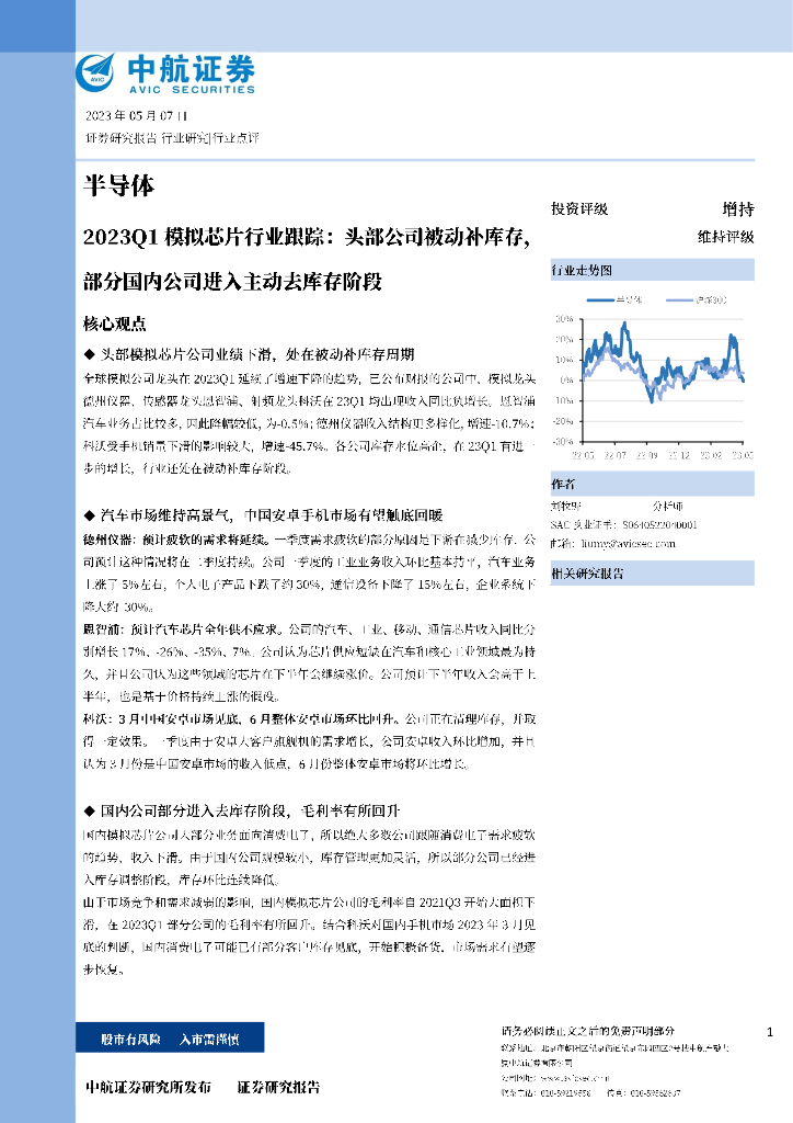 中航证券:2023Q1模拟芯片行业跟踪:头部公司被动补库存,部分国内公司进入主动去库存阶段.pdf