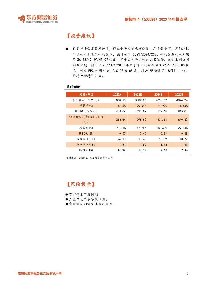 东方财富证券:依顿电子(603328)-2023年中报点评:降本效果显著,Q2业绩创新高.pdf
