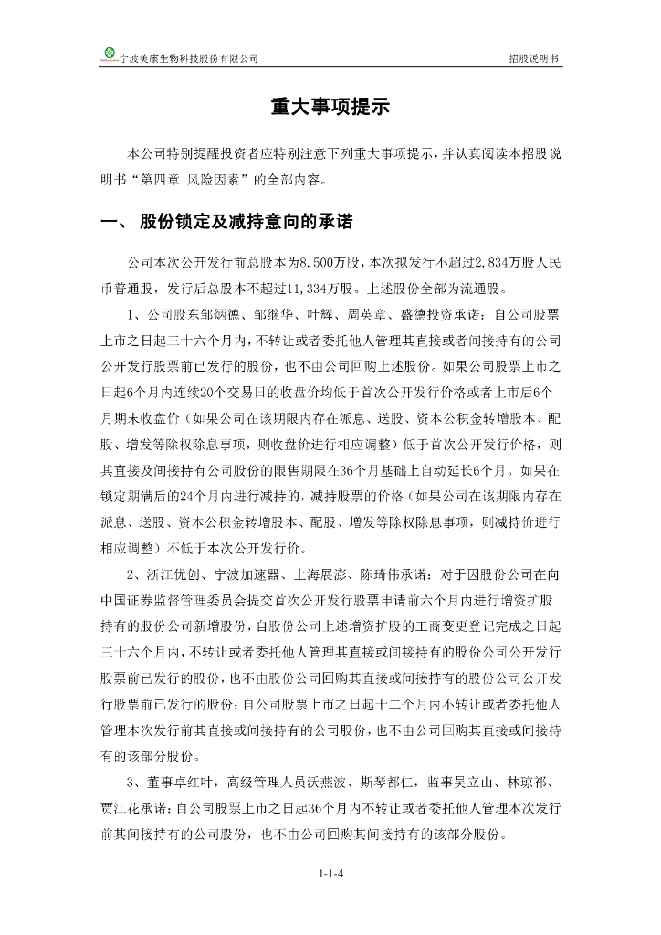 宁波美康生物科技股份有限公司深交所创业板IPO上市招股说明书.pdf